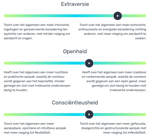 gemeten persoonlijkheidskenmerken worden vertaald naar aanleg voor gedrag in de werkcontext.